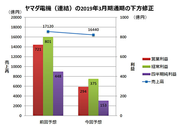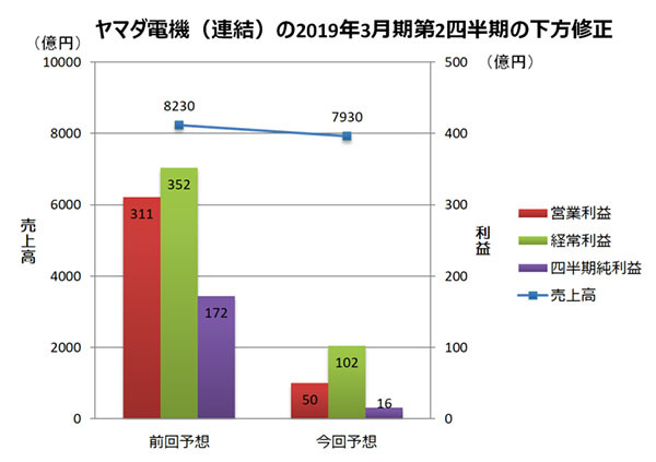 ヤマダ電機は10月18日、2019年3月期第2四半期(4~9月)連結累計業績の大幅な下方修正を発表した。