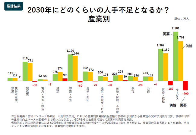 2030年の人手不足は644万人と推計、最も深刻な産業はサービス業