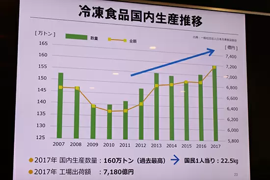 単独世帯の増加にならんで、冷凍食品のニーズが高まっている。2018年4月に日本冷凍食品協会が全国の25歳以上の男女1250人に実施した調査では、冷凍食品を「週2~3回」利用する人が最多で、「ほとんど使わない」は年々減少して現在は2割前後だという。