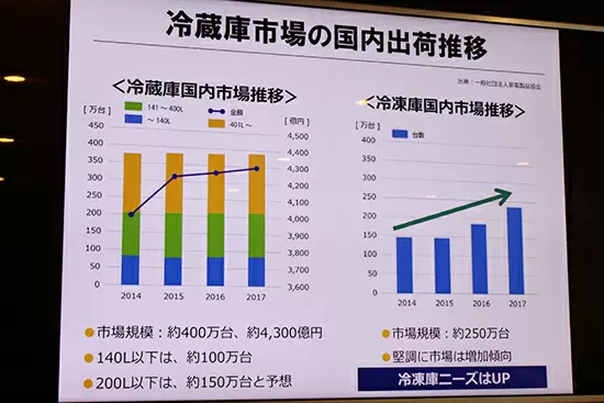 さらに、家電製品協会が発表している冷蔵庫の国内出荷推移をみると、冷蔵庫は横ばいが続いているものの、冷凍庫は堅調に増加を続けている。こうした状況を踏まえると、ツインバード工業が100~200L帯の単独世帯向け小型冷蔵庫を開発するのは、“日本の暮らしに寄りそった結果”だといえるだろう。(BCN・南雲 亮平)