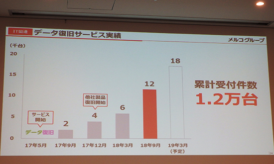 法人向け市場では、学校への無線LAN機器の導入数拡大を図るため、PR活動や文教関連に強いパートナーとの関係強化に取り組んだ。サービス分野では、「バッファロー正規データ復旧サービス」の受付件数が累計1万2000件を超えるなど法人も含めて反響が多かった一方で、賃貸集合住宅向けWi-Fiインターネットサービス「アパートWi-Fi」は、累計導入戸数が4万5000戸(約3000棟)を超えたものの、サービス体制強化に伴う約70人の人員増の影響でコストが先行した。