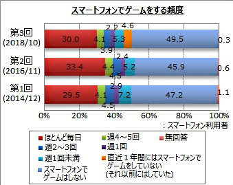 マイボイスコムは、3回目となる「スマートフォンでのゲーム利用」に関するインターネット調査を、2018年10月1~5日に実施した。1万480件の回答を集めた。