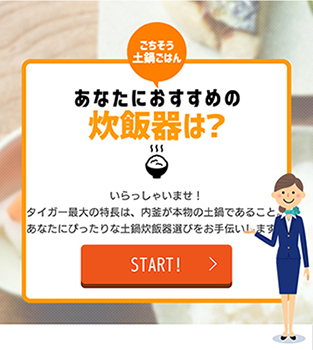 容量、土鍋釜か金属釜か、予算、など簡単な質問に答えるだけで、おすすめの炊飯器を提案してくれる。最後に辻本氏から「まず基準とする一台を決めておくと、選ぶのがぐっと楽になりますよ」とのアドバイス。お店に行く前にチェックしてみるといいだろう。