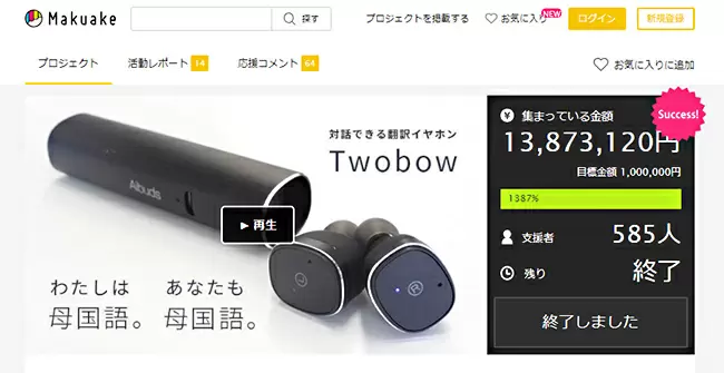 翻訳機能搭載のイヤホンが続々と登場中(写真はアスタイルの「TwoBow(ツーボー)」)