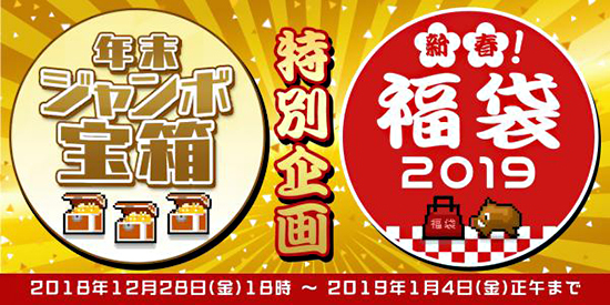 「年末ジャンボ宝箱」は、ノートPCと周辺機器、携帯型ゲーム機と2in1タブレット型PCを組み合わせた5~7万円のセットを3種。「福袋2019」は、人気プロゲーミングチーム「よしもとLibalent「Zoo Gaming」のオリジナルグッズ付き6点セットを2種と、2019年にちなんだ価格の単品・セットを3種、合わせて5種を販売する。2019年にちなんだ価格の福袋3種は、最大で8割程度もお得になっており、1月1日から3日間連続で毎日正午に1種ごとに公開する。