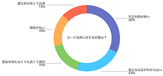 認知度は増しているものの、利用率が高くない要因の一つはコード決済に対する印象だ。同調査でも、32%が「不正利用が怖い」、23%が「使えるお店がわからない」と回答している。コード決済を利用できる店舗がサービスによって異なったり、少なかったりすることが、普及のハードルになっているとみられる。