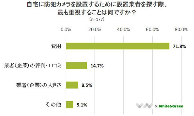 調査によれば、「設置したいと思う」との回答が「既に設置していて、さらに設置したいと思う」を含めて44.1%だったという。その中で、どのような点を重視して設置業者を決めるのかを聞いたところ、71.8%が「費用」と回答したとのこと。NEXERでは、設置業者の知名度や評判よりも金額面が優先されると捉えている。