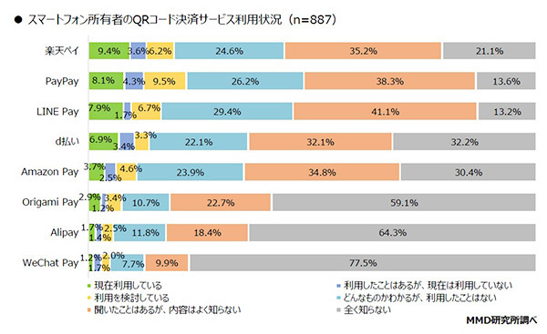 QRコード決済で利用が多いのは? MMD研究所がスマホ所有者に調査