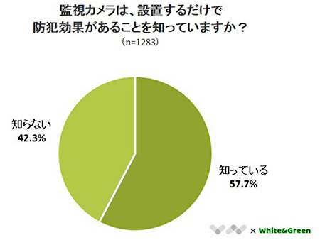 監視カメラの設置に防犯効果があることを知っているかどうか聞いたところ、42.3%が「知らない」と回答したという。最近では、画像解析技術や通信技術の向上によって、防犯カメラが街のさまざまな場所に設置されている。防犯カメラを取り付けることで犯罪件数が減少した事例が多数あり、防犯カメラを設置すること自体が犯罪抑止力になるとの見方がある。