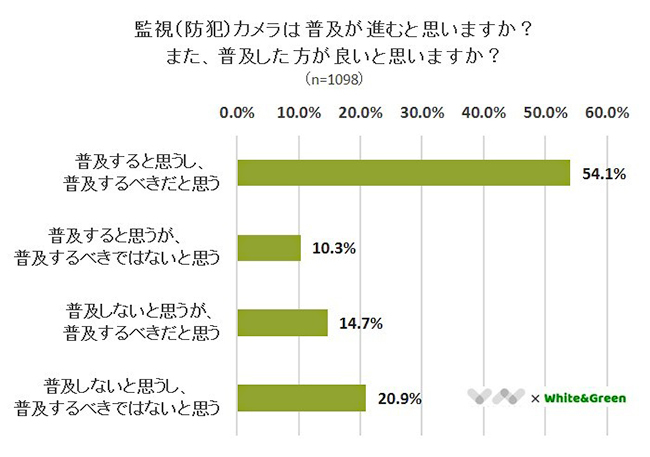 インターネットリサーチを手掛けるNEXERは、防犯カメラの販売・設置を行うWhite&Greenと共同で「防犯カメラに関するアンケート」を実施した。実施期間は2月1~28日。アンケートサイト「ボイスノート」の会員を対象に、1098人から回答を得た。