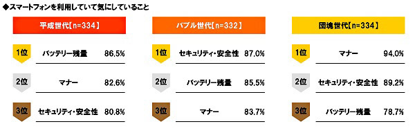 ジュピターテレコム(J:COM)は、テレビも視聴していてスマートフォン(スマホ)も使う「平成世代(1989~99年生まれ)」「バブル世代(65~69年生まれ)」「団塊世代(47~49年生まれ)」の男女を対象に「テレビ視聴・スマホ利用に関する世代比較調査」を3月15~18日の4日間に渡ってインターネットリサーチで実施、1000人の有効サンプルを集計した。調査協力機関は、ネットエイジア。