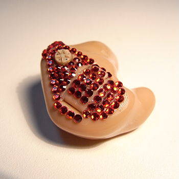 補聴器のネガティブなイメージを払拭するためにuCCI氏が自身で作成、考案したのが「デコ補聴器」だ。補聴器にスワロフスキーをあしらった補聴器は医療機器という概念を忘れさせるほど、クールでおしゃれ。「初対面の相手との会話のきっかけにもなる」とuCCI氏らしい意図もある。