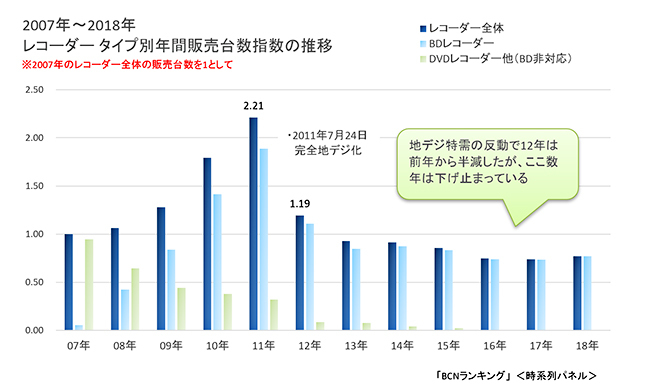 「地デジ特需」はレコーダーにも波及 ピークは8年前