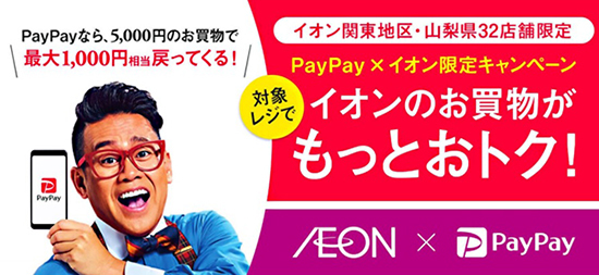 PayPayが関東・山梨県32店舗のイオンで使える、20%ポイント還元も