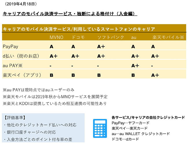 4大キャリアのモバイル決済を入金方法で格付け 各社の囲い込み戦略が見え隠れ