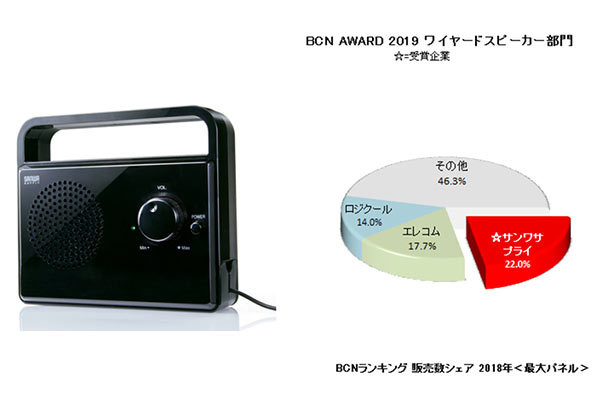 【BCN AWARD 2019・喜びの声】 全国の主要家電量販店・ネットショップのPOSデータを集計した「BCNランキング」のワイヤードスピーカー部門で、2018年1月~12月の1年間の販売台数シェアNo.1だったメーカーは、PC周辺機器やサプライ商品の企画・製造・販売を手掛けるサンワサプライ。手元でテレビの音声を聴くことができるスピーカーが、高齢者など耳が聴こえにくくなったユーザーに人気だった。受賞の喜びを山田哲也代表取締役社長に寄せてもらった。
