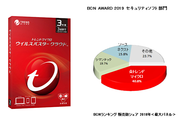 【BCN AWARD 2019・喜びの声】 全国の主要家電量販店・ネットショップのPOSデータを集計した「BCNランキング」のセキュリティソフト部門で、2018年1月~12月の1年間の販売台数シェアNo.1だったメーカーは、トレンドマイクロ。同社の受賞は今回で11年連続。受賞の喜びと2019年の戦略について、大三川彰彦 取締役副社長にコメントを寄せてもらった。