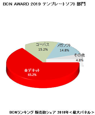 「販促チラシ」シリーズなどを含む「テンプレートソフト部門」で5年連続、「パソコンで住所録・宛名印刷」などを含む「データ管理ソフト部門」で3年連続の受賞。デネットは、このほか、動画・音楽ダウンロードソフト、録画ソフトなど、さまざまなPC向けソフトウェアのパッケージ販売・ダウンロード販売を行っている。
