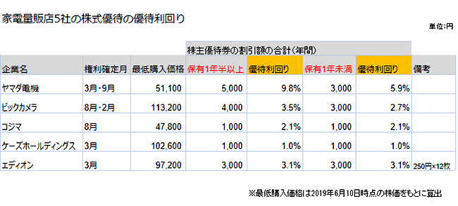 家電量販店の株主優待券をゲットするには5~12万円の資金が必要