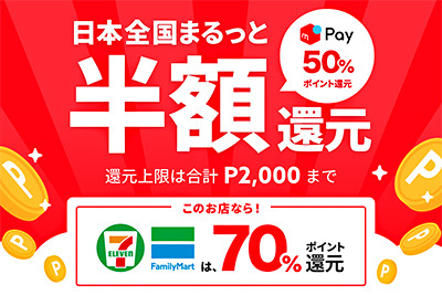 セブン-イレブンとファミリーマートでは、還元率が上がり、70%相当のポイントが戻ってくる。期間中は人気商品のクーポンを配布し、キャンペーンと併用することもできる。ポイント還元上限は合計で2000円相当。キャンペーン期間は6月30日23時59分まで。