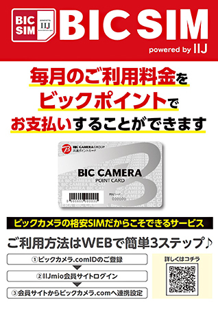 ビックカメラは、インターネットイニシアティブ(IIJ)のモバイルサービス「BIC SIM powered by IIJ(BIC SIM)」と光回線サービス「ビック光 powered by IIJ(ビック光)」でビックポイントとの連携を6月21日に開始する。BIC SIMやビック光の契約者は、月額の利用料金をビックポイントで支払うことができる。