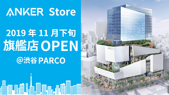アンカー・ジャパンは、常設直営店「Anker Store」の旗艦店を11月下旬に開業予定の「渋谷PARCO」5階にオープンする。