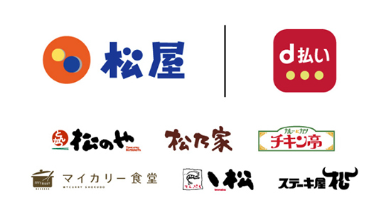松屋フーズホールディングスは6月25日、全国グループ店舗の松のや、松乃家、チキン亭、マイカリー食堂、ヽ松(てんまつ)、ステーキ屋松で、NTTドコモが運営するスマートフォン(スマホ)決済サービス「d払い」に同日から対応したと発表した。