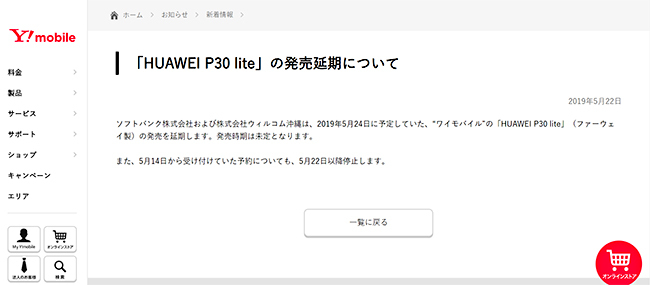 気になるのは大手3キャリアの動向だ。ソフトバンクがワイモバイルで発売予定だった「HUAWEI P30 lite」、KDDIがauで発売予定だった「HUAWEI P30 lite Premium」を5月22日に発売延期、NTTドコモが「HUAWEI P30 Pro」の予約受付を同日に停止。その後、目新しい動きはない。