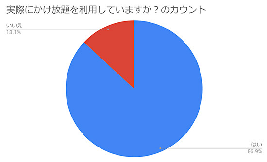 「かけ放題」オプションに加入の実際に利用状況については、86.9%が「利用している」、13.1%が「利用していない」と回答した。