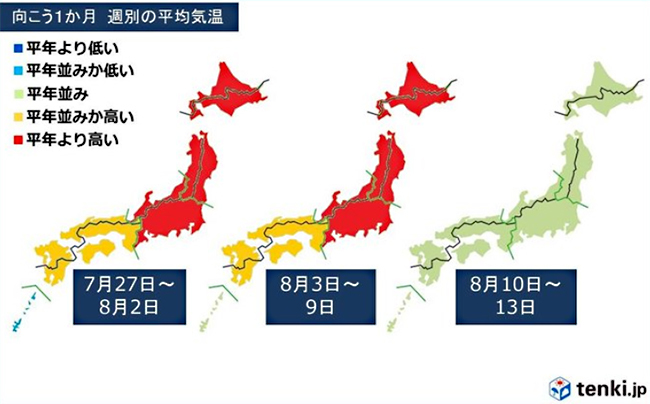だた、日本気象協会は8月上旬まで、西日本で「平年並みか高い」、東日本で「平年より高い」と今後の気温を予測しており、来週以降はさらに警戒が必要になりそうだ。