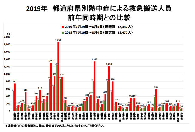 梅雨明けが昨年よりも遅れたことで、暑さのピークがずれこんだこともあるが、昨年同期比でも救急搬送数は約1.5倍になった。都道府県別では、秋田県を除く地域で昨年を上回っている。猛暑は、盆休みにかけて続くとみられ、外出の際に一層の警戒が必要となりそうだ。(BCN・大蔵 大輔)
