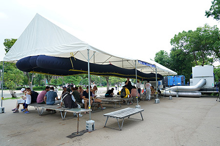 観光客を炎暑から守る、大阪城公園で「大型屋外冷房システム」の実証実験