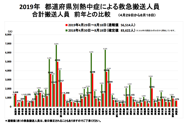 梅雨明けが遅れ、暑さのピークがズレこんだ影響で、昨年と比較すると同時期の救急搬送数は今年の方が上回っている。都道府県別では、西日本の一部地域を除いて昨年以上を記録。東京・愛知・大阪などの都市部では、約2倍の数値をつけた。(BCN・大蔵 大輔)