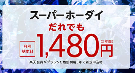 新たなスーパーホーダイは、最低利用期間と契約解除料を撤廃した縛りのないプランになる。プランSからLLまでの4種類から選択でき、プランSの場合が月額2980円で利用可能。楽天会員の場合、加入後1年間は毎月1500円の割引が発生する。適用すれば、プランSを月額1480円で1年間利用することができる。さらに、ダイヤモンド会員は500円割引で、月額980円になる。