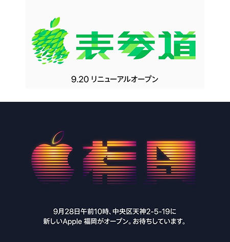 アップルは、直営店であるApple福岡を9月28日に、Apple表参道を9月20日に、それぞれリニューアルオープンする。