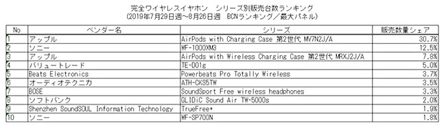 AirPodsの牙城を崩すのは? 8月の完全ワイヤレスイヤホン販売動向