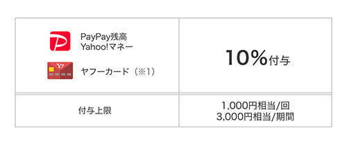 ライフでPayPay残高やYahoo!マネー、ヤフーカードで決済すると、決済翌月の20日前後に10%のPayPayボーナスが付与される。付与上限は1回の支払いで1000円相当、期間中の付与合計上限は3000円相当。