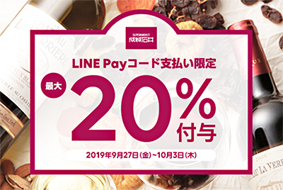 スマートフォン(スマホ)決済サービスの「LINE Pay」は、9月27日~10月3日の1週間、スーパーマーケットの成城石井で「LINE Pay限定!コード支払いで最大20%プレゼントキャンペーン」を実施している。