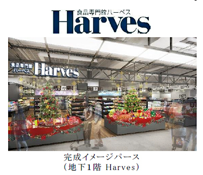 LINKS UMEDAは大阪や関西の初出店が目白押しだ。地下1階は食のエンターテインメントフロアとして、梅田地区最大級の規模のスーパーマーケットとして、近鉄グループの近商ストアが運営する「食品専門館ハーベス」が初出店する。“賑やかマルシェ”をテーマに、地区最大級のお弁当や総菜を揃える。
