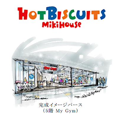 約5300平方メートルのヨドバシカメラ玩具・ホビーコーナーとつながる5階は、子どものいる家族向けのフロア。全国初出店となる「ミキハウス」のベビー&キッズウェアブランド「HOT BISCUITS」がオープンするほか、0~13歳までを対象とする全てのクラスを英語で進行する幼児向けフィットネスクラブ「My Gym」が関西初出店する。児童心理学や生理学、社会学の知見から独自開発したプログラムは、世界からも全米No.1の子供向け教育プログラムとして評価を受けているという。