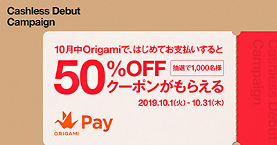 Origami Payは新規でサービスを利用するユーザーを対象に、50%OFFクーポンが抽選で1000人に当たるキャンペーンを開催する。最大割引金額は500円。当選者には、11月上旬にアプリ内のメッセージで通知される。期間は10月31日まで。すでに利用しているユーザーは対象外となるが、もしOrigami Payは未経験というユーザーは狙ってみるとよいだろう。