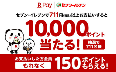 「期間中ずーっと実質最大5%還元」の第2弾を展開している楽天ペイは、対象店舗を拡大してきた。10月1日からはセブン-イレブンで対応。導入を記念して、711円以上を決済したユーザーに楽天スーパーポイント150ポイントをプレゼントするなどキャンペーンも展開している。