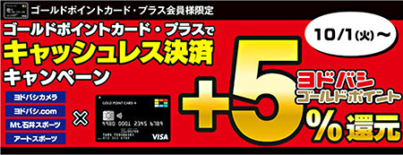 小売業が自らキャッシュレス・ポイント還元事業を踏まえたキャンペーンを展開している例もある。ヨドバシカメラは、グループ各店でゴールドポイントカード・プラスのクレジットカードで決済した場合、通常1%のところ5%のヨドバシゴールドポイントを還元する「ゴールドポイントカード・プラスでキャッシュレス決済キャンペーン」を開催する。期間は12月31日まで。