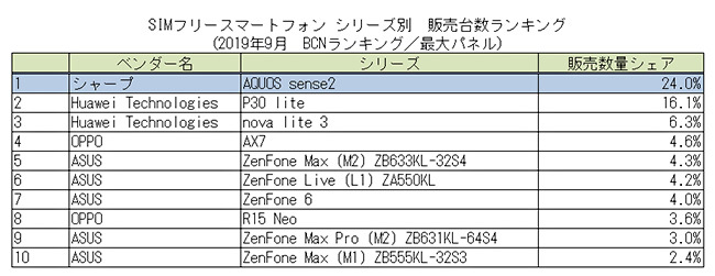 好調のシャープもSIMフリーでの展開時期を決定していないが、すでに「AQUOS sense3」を発表済み。ファーウェイ一強の状況がここ数年続いていただけに、年末はメーカー別・シリーズ別ともに例年以上の激しいシェア競争が展開されることになりそうだ。(BCN・大蔵 大輔)