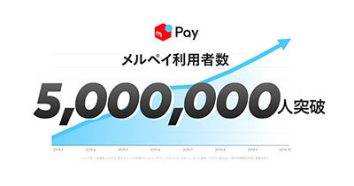 スマートフォン(スマホ)決済サービス「メルペイ」の利用者数が、10月16日に500万人を突破した。9月5日時点で400万人に到達。41日間で100万人増加したことになる。