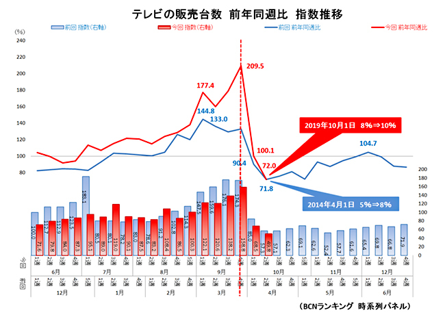 前回は、増税後の2週目を底に3週目以降はなだらかに回復に向かっていったが、今回は前回以上に回復の勢いが強くなるのかもしれない。(BCN・細田 立圭志)