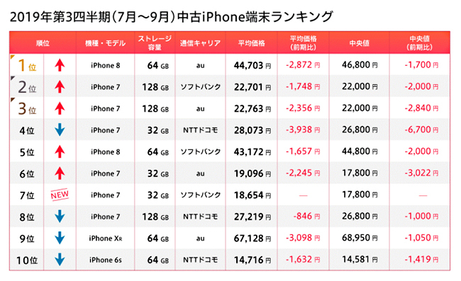 中古スマホランキング、iPhone 7首位陥落 SIMロック解除の影響は「これから」