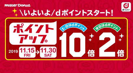 ダスキンが運営するミスタードーナツは、NTTドコモのポイントサービス「dポイント」を全国の店舗で11月11日から導入する。