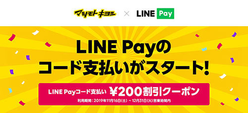 10月30日からマツモトキヨシホールディングスが運営するグループ店舗で対応したLINE Payは、11月16日~12月31日まで、支払金額がその場で200円引きになる「マツキヨ限定!LINE Pay200円OFFクーポン」をプレゼントする。「LINE Pay」の「LINE公式アカウント」からの配信か、店内POPのQRコードなどからクーポンをダウンロードすれば、支払い時に利用することができる。