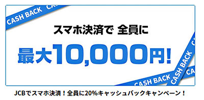 ここでGoogle PayとApple Payに対応していることで、12月15日までJCBが実施している大型キャンペーン「JCBでスマホ決済!全員に20%キャッシュバックキャンペーン!」が使える。